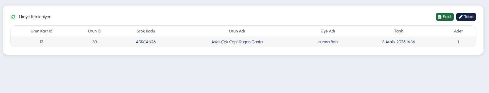 göre üye sepetlerini filtreleyerek listeleyebilirsiniz.