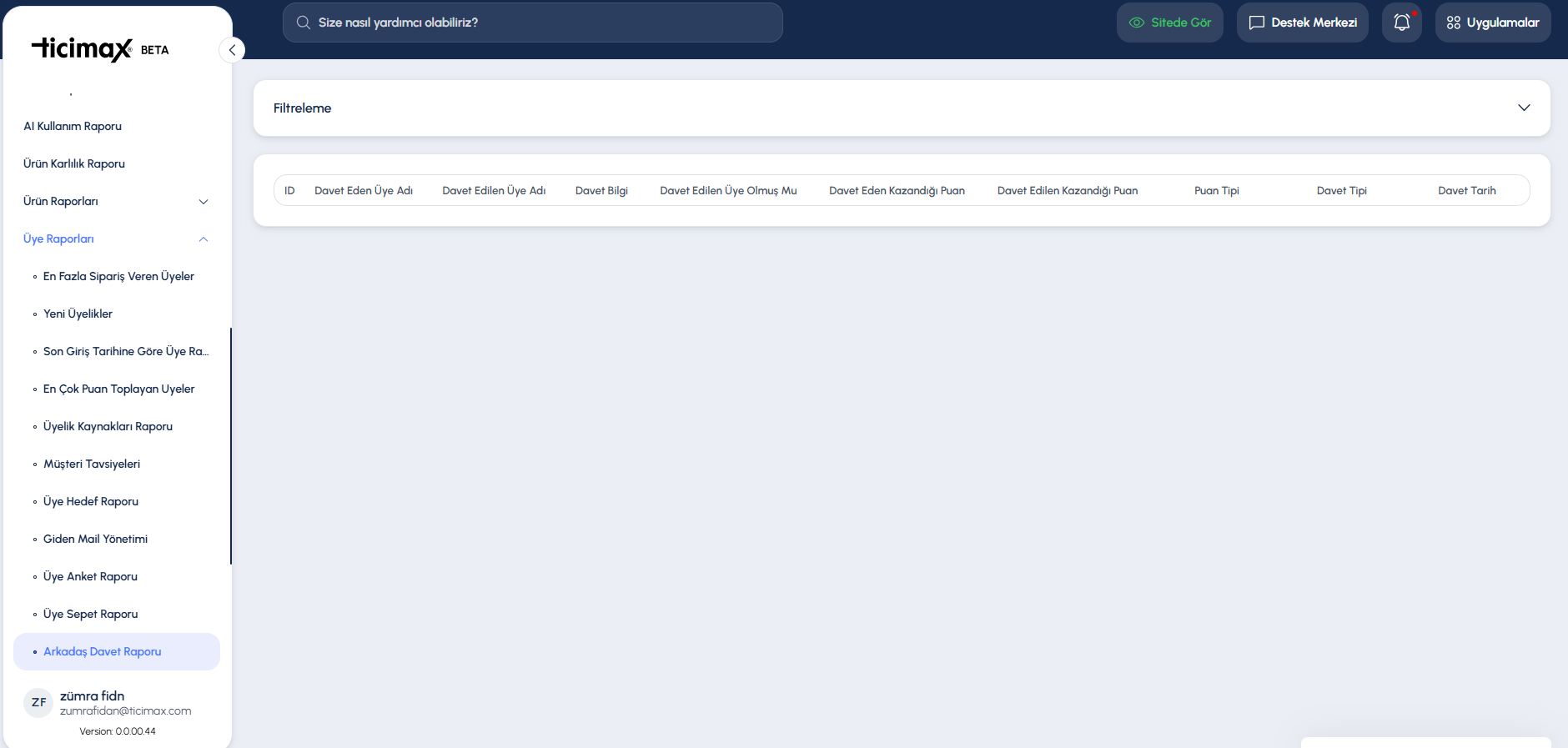 Arkadaş davet raporu ile ilgili modüle ilişkin kullanım bilgileri inceleyebilirsiniz.
