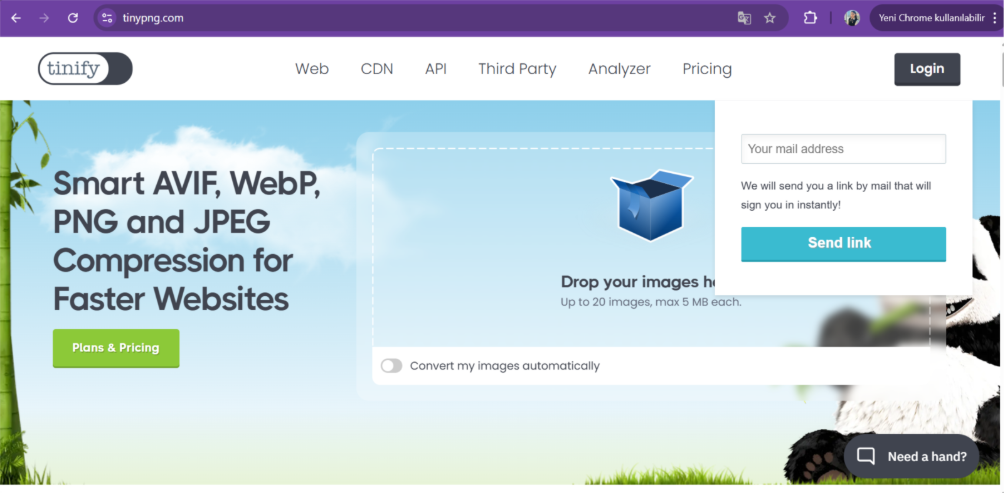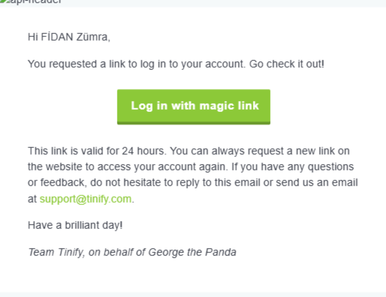 TinyPNG’den gelen “Log in with magic link” başlıklı e-postayı açın.